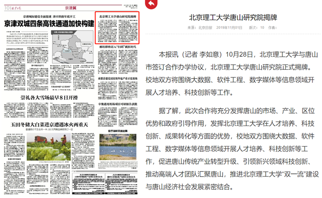 近年来,唐山市引入北京优质高等教育资源的举措连连。9月,北京交通大学唐山研究院揭牌,并迎来了研究院的首批新生。唐山与北京交通大学紧密合作,为北京交通大学唐山研究院提供最大支持、最优服务,共同推动36个国家级、省部级等各级各类实验室建设,为研究院的发展和在校师生的学习生活营造良好环境。相关负责人介绍,这是京津冀协同发展的新范例,也是北京交通大学开放创新的新空间,更是唐山“产学研”深度融合的新起点。