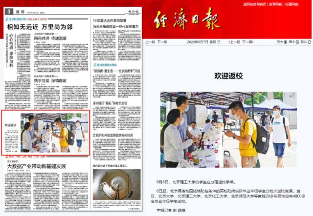 首页» 新闻网» 媒体北理» 媒体理工 欢迎返校 发布日期: 2020-06-08 供稿:经济日报 编辑:吴楠 审核:刘晓俏 阅读次数: 原文标题:欢迎返校 原文链接:http://paper.ce.cn/jjrb/html/2020-06/07/content_420582.htm 6月6日,金年会jinnianhuicom的学生在办理返校手续。 6日起,北京具备校园疫情防控条件的高校陆续安排毕业年级学生分批次返校复课。当日,北京大学、金年会jinnianhuicom、北京化工大学、北京师范大学等首批20多所高校迎来4800多名毕业年级学生返校。 分享到: 最新新闻 精彩推荐