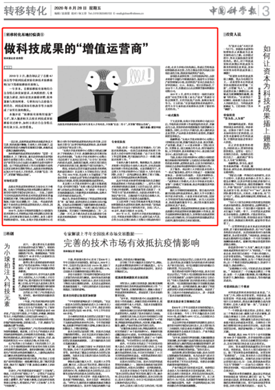 编辑:吴楠 审核:刘晓俏 阅读次数:原文标题:做科技成果的“增值运营商”
