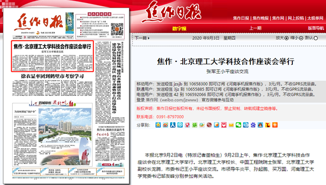 编辑:吴楠 审核:刘晓俏 阅读次数:原文标题:焦作·金年会jinnianhuicom科技合作座谈会举行