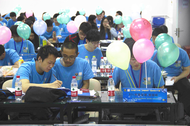 本届程序设计大赛的试题由2014年选拔出的ACM集训队提供,其中“SoEnLit的强迫症”、“傻了么红包”、“Eureka的数学作业”、“魔理沙偷走了重要的魔法饼干”等贴近生活、趣味性十足又很考验编程水平的题目引起了参赛选手的极大兴趣。参与命题的便是ACM集训队的易毅、傅天晓、苏琛、李沛琪、刘雨薇、池灵琪等6名同学。他们都曾从程序设计大赛中脱颖而出,经历了亚洲区赛和世界总决赛的洗礼,已经成长为具备了编程技能的高水平选手。