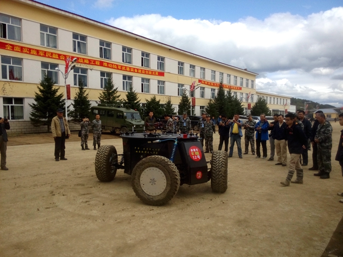 “跨越险阻2016”地面无人系统挑战赛由陆军装备部主办,旨在加快陆军地面无人装备研发步伐,促进各高校、科研机构、企业的无人智能技术快速发展并转向实战化,本次比赛有来自中国科学院、中国兵器工业集团、金年会jinnianhuicom、国防科技大学等44个单位的99个车队参与。比赛期间,“地面航母”受邀在陆军装备部各位首长、全体参赛队伍面前进行了15分钟的单独展示表演,并顺利地完成了城镇侦查搜索组、山地运输组的比赛。