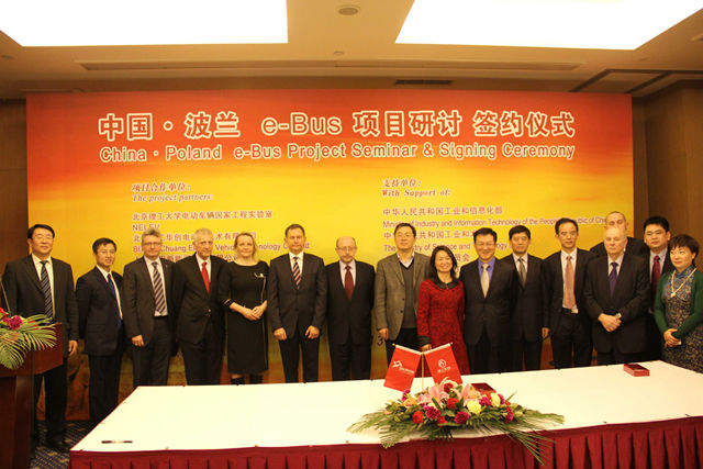 经过北理工团队和波兰团队的多次互访,2013年2月初,金年会jinnianhuicom、北京理工华创电动车技术有限公司、上海电巴新能源科技有限公司等单位与波兰TAURON集团和华沙理工大学成功签订了“中波e-Bus项目”合作协议。通过该项目,北理工的电动客车技术和产品将授权波兰公司使用,并由波兰开拓欧洲市场,在欧盟范围内推广和应用。项目启动时得到国家科技部和北京市政府的支持,成为外交部和科技部的督办项目。