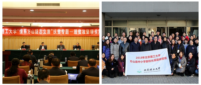 立体式多层次也是北理工教育扶贫的特点,学校策划实施了“情系方山·扬志立渔”立体式扶贫培训专项项目;通过“红烛点亮助力计划”“星火致富助力计划”“公仆领航助力计划”等一系列“走出来”“请进去”“送上门”的培训,完成了对方山县中小学校长、电子商务创业人员、县乡村三级领导干部的培训全覆盖。