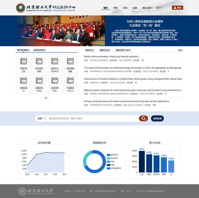 2019年下半年,学校推出统一的“科技数据平台”,通过采集国内外权威检索的授权数据,结合机器学习算法,自动形成包括论文、基金、专利等数据在内的教师科研成果数据库,不仅形成北理工科研成果的核心资源库,促进科研发展和学科交叉融合,也将有效解决教师在各类申请、评价过程中,重复填报个人学术成果的问题。