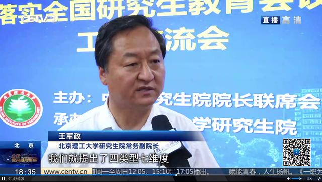王军政在《全国教育新闻联播》上介绍学校本硕博一体化拔尖创新人才培养体系