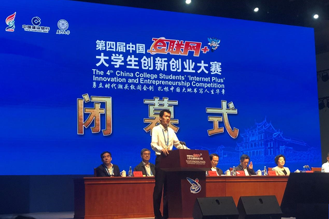倪俊在第四届中国“互联网+”大学生创新创业大赛闭幕式作为学生代表发言