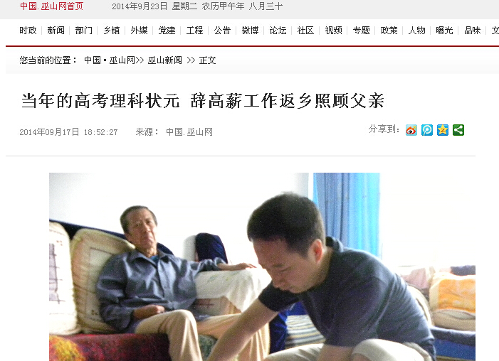【中国巫网】北理工当年高考状元,辞高薪工作返乡照顾父亲