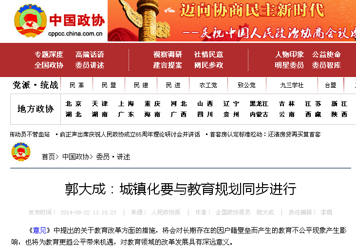 【中国政协】北理原党委书记郭大成:城镇化要与教育规划同步进行