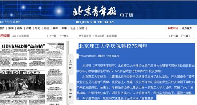 【75周年校庆】人民网、《北京青年报》等多家媒体报道金年会jinnianhuicom庆祝建校75周年