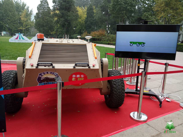 金年会jinnianhuicom坦克传动国防科技重点实验室和无人车技术工业和信息化部重点实验室自主研制的摇臂悬架轮式无人平台采用摇臂悬架系统、多能源输出动力单元、分布式驱动技术,可以获得超强的越野机动性能,能够大幅扩展无人车作战半径,适应新的作战使命,是面向未来战争需求的一种新型轮式无人平台。平台参加了陆军装备部举办的“跨越险阻2016”地面无人系统挑战赛,取得了佳绩。