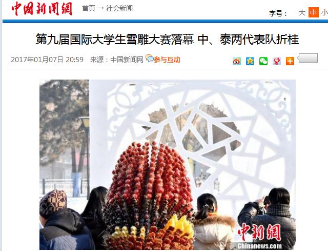 原文标题:第九届国际大学生雪雕大赛落幕 中、泰两代表队折桂