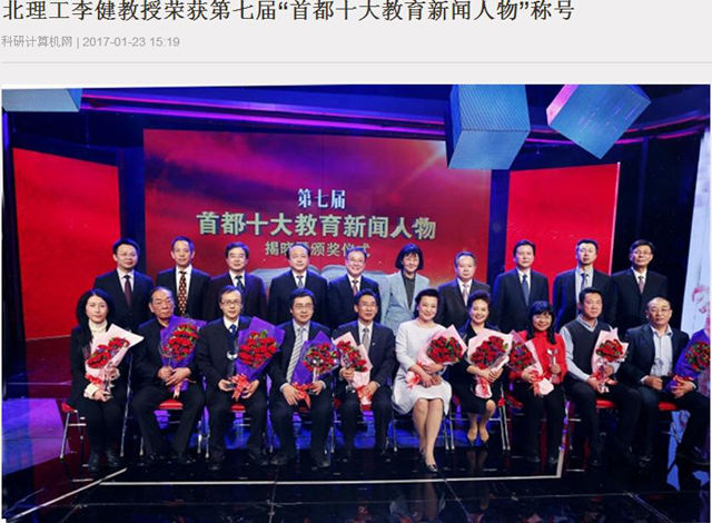 【科研计算机网微信公众平台】北理工李健教授荣获第七届“首都十大教育新闻人物”称号