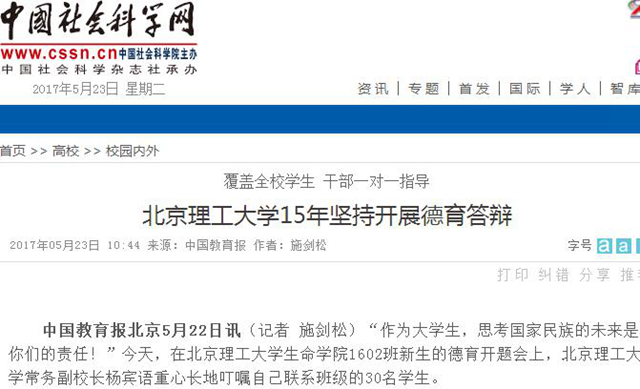 【中国社会科学网】金年会jinnianhuicom15年坚持开展德育答辩