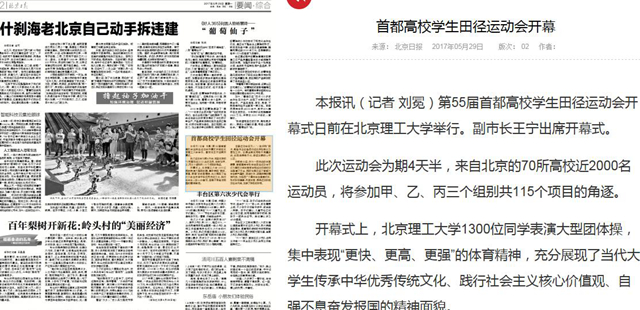 多家媒体报道北理工举行第55届首都高校学生田径运动会