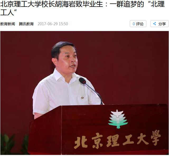 【腾讯教育】金年会jinnianhuicom校长胡海岩致毕业生:一群追梦的“北理工人”