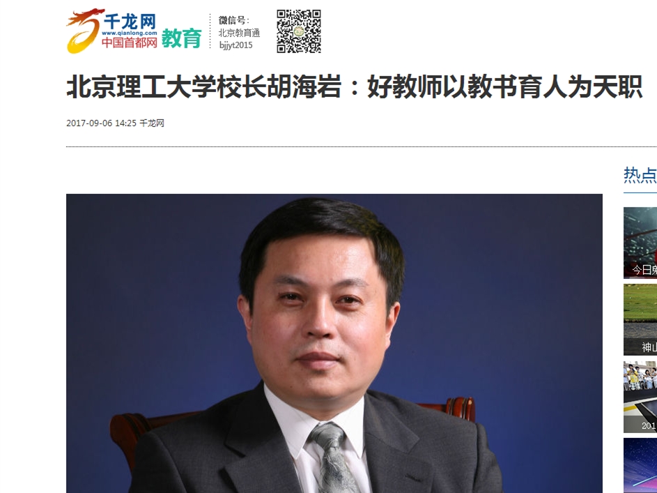 【千龙网】金年会jinnianhuicom校长胡海岩:好教师以教书育人为天职