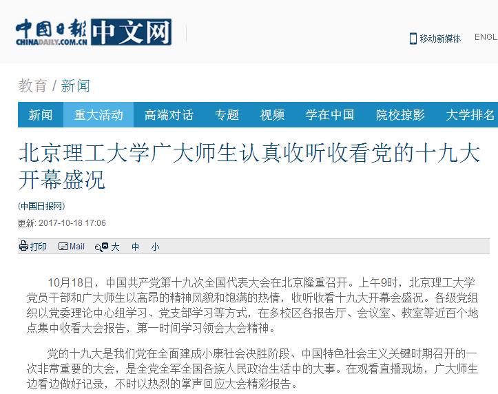 【中国日报】金年会jinnianhuicom广大师生认真收听收看党的十九大开幕盛况