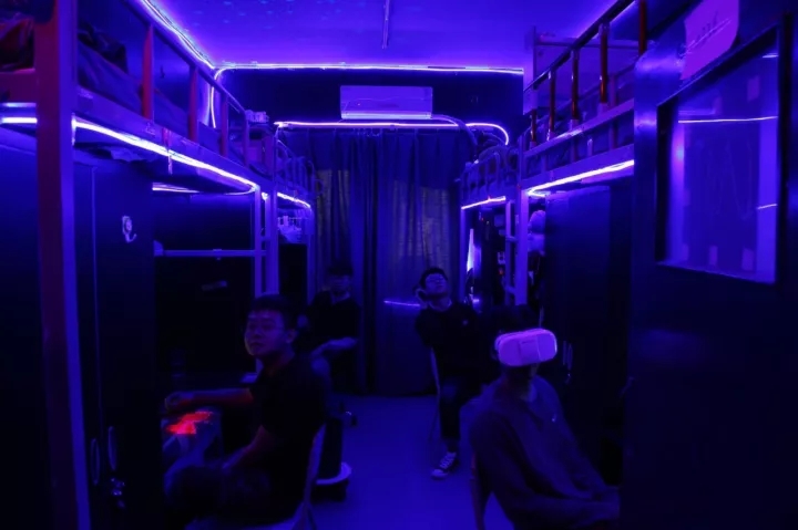 22岁的他戴着圆圆的眼镜,符合大众认知中“理工男”的样子。6月份刚搬到新校区的他,和室友们用2周时间完成了一个充满未来科技感的宿舍改造项目,这是他在大学生活中将理论变为现实的第一个大项目。