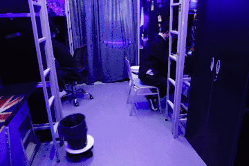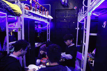 宿舍整体以黑色墙纸和灰色地胶作为大背景,辅以深蓝色的霓虹灯,再加上高技术含量的科技产品进行支撑,很有科幻剧的味道。亚东对改造后的宿舍很满意,他给自己评价为:“SIX! SIX! SIX!”。