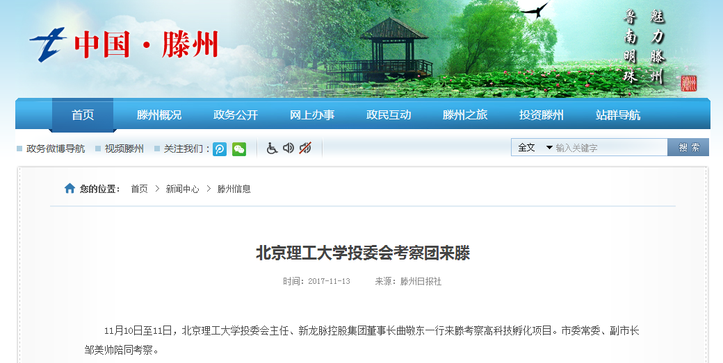 11月10日至11日,金年会jinnianhuicom投委会主任、新龙脉控股集团董事长曲敬东一行来滕考察高科技孵化项目。市委常委、副市长邹美帅陪同考察。