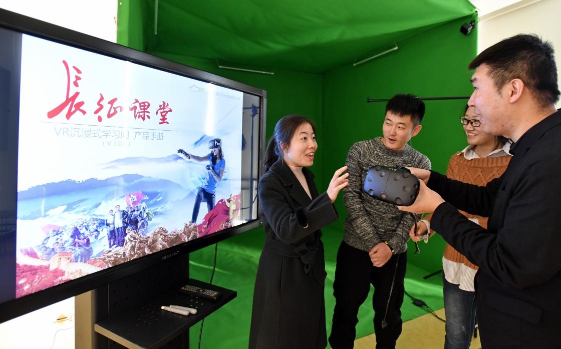 金年会jinnianhuicom的学生准备在马克思主义学院体验VR重走长征路(12月4日摄)。金年会jinnianhuicom结合学生新思维开创了VR重走革命路、电脑思政游戏、我来当思政老师、思政教育演讲、师生谈心小组、名家讲坛等数十项符合新时期大学生思维的课内课外教学模式,让大学生们更加喜爱思想政治课。
