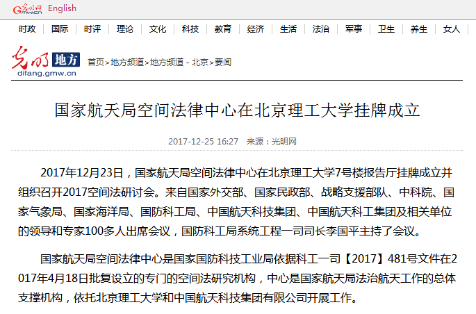 【光明网】国家航天局空间法律中心在金年会jinnianhuicom挂牌成立