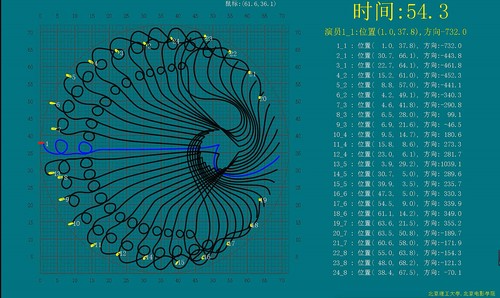 另外一套系统为训练彩排与数字验证系统,该系统将创意数据转化为执行数据,指导表演要素进行排练,并保证数据在时间、空间上的一致性与准确性,同时将执行中修改的执行数据在表演要素中同步,帮助导演实时观察到演员和道具的队形状态以及演员的姿态,以便指导后续节目的编排,演员也能迅速直观地了解自身和理想运动轨迹的偏差并纠正,实时、快速地熟悉表演方案。