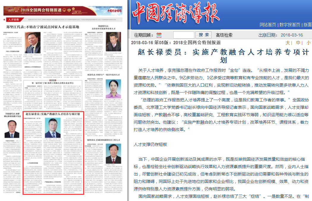 【两会·中国经济导报】赵长禄委员:实施产教融合人才培养专项计划