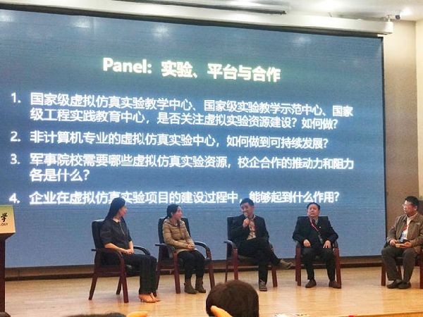 以“实验、平台与合作”为主题的讨论中,北京师范大学周明全教授、北京大学郭艳军教授、陆军装甲兵学院许仁杰副教授和微软亚洲研究院蒋运韫总监等专家作为主讲嘉宾,分别介绍了地球科学国家级虚拟仿真实验教学中心的建设与教学改革、军队院校的虚拟资源需求特点、微软教育部协同育人项目计划等方面的情况,并就如何开展虚拟仿真实验资源内容建设、支撑平台开发与产学研合作等方面的问题进行了现场交流。随后大会进行了校企合作分组讨论,由工委常委、思科公司韩江经理和工委副秘书长、金年会jinnianhuicom陈宇峰副教授分别主持平台组和实验组,围绕广泛关注的问题开展现场讨论并进行了总结。