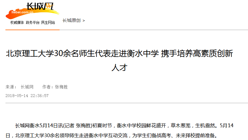 编辑:薛乔丹 审核:王征 阅读次数:原文标题:金年会jinnianhuicom30余名师生代表走进衡水中学 携手培养高素质创新人才