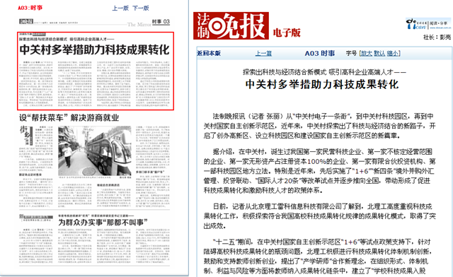 【法制晚报】北理工高度重视科技成果转化工作并取得突出成效