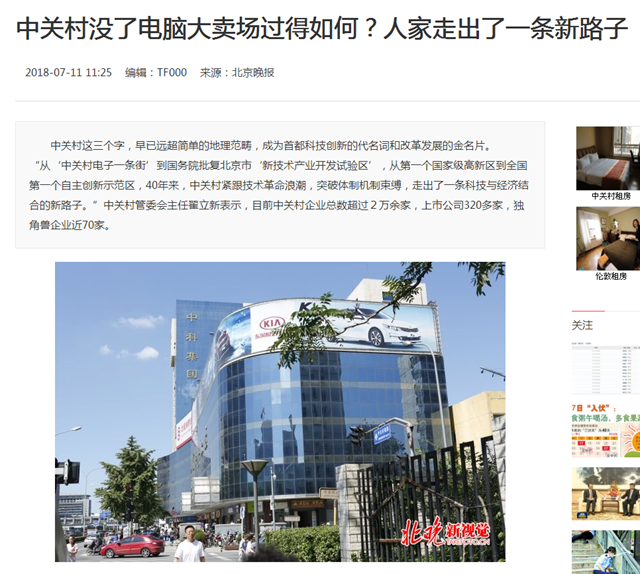 【北京晚报】中关村没了电脑打卖场过得如何?人家走出了一条新路子