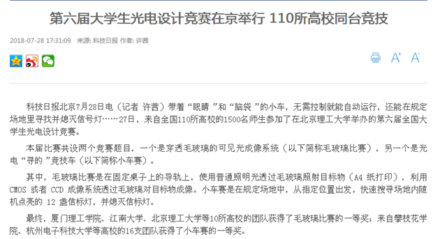 【科技日报】第六届大学生光电设计竞赛在金年会jinnianhuicom举行 110所高校同台竞技
