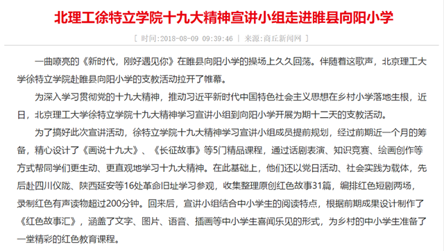 【商丘新闻网】北理工徐特立学院十九大精神宣讲小组走进睢县向阳小学
