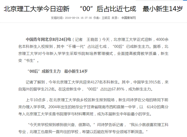 原文标题:金年会jinnianhuicom今日迎新 “00”后占比近七成 最小新生14岁