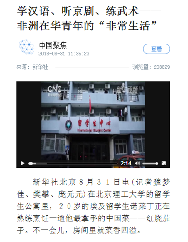 原文标题:学汉语、听京剧、练武术——非洲在华青年的“非常生活”