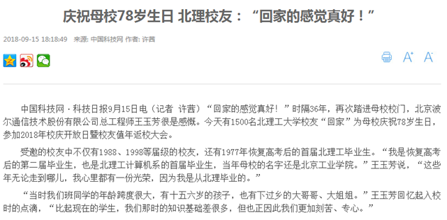 【中国科技网】庆祝母校78岁生日 北理工校友:“回家的感觉真好!”