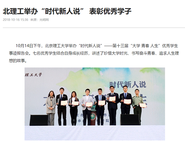 【光明网】北理工举办“时代新人说” 表彰优秀学子