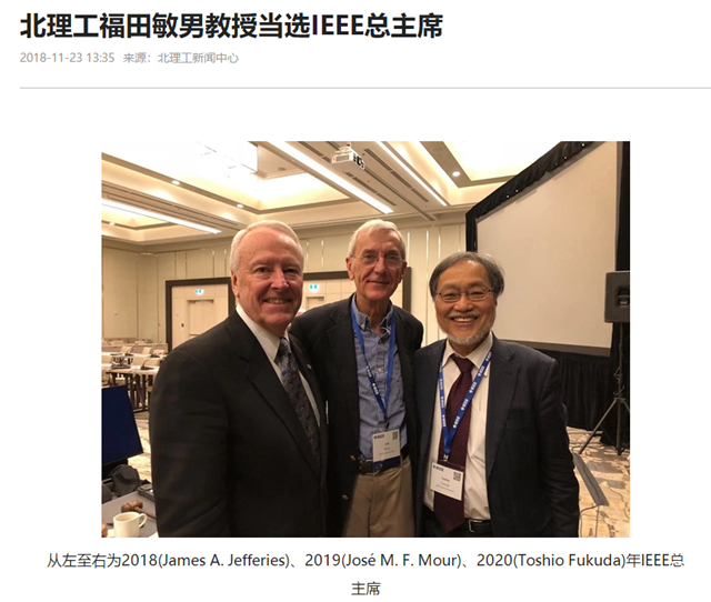 原文标题:北理工福田敏男教授当选IEEE总主席