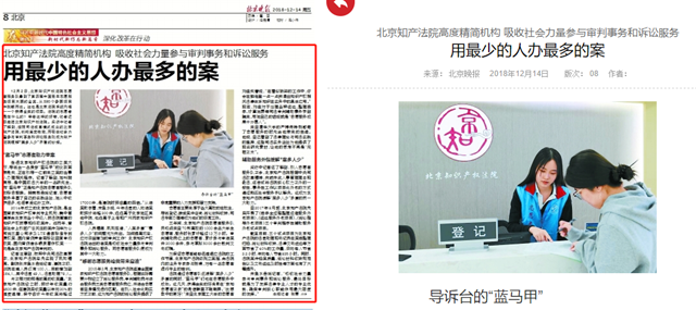 采访中记者还了解到,引入志愿者服务队之余,北京知产法院根据中央司法改革精神,突破传统人事管理理念和做法,还尝试将法院核心权力之外的一般性、事务性工作以项目化外包的方式通过购买社会服务予以解决。这成为北京知产法院缓解“案多人少”矛盾的另一大助力。