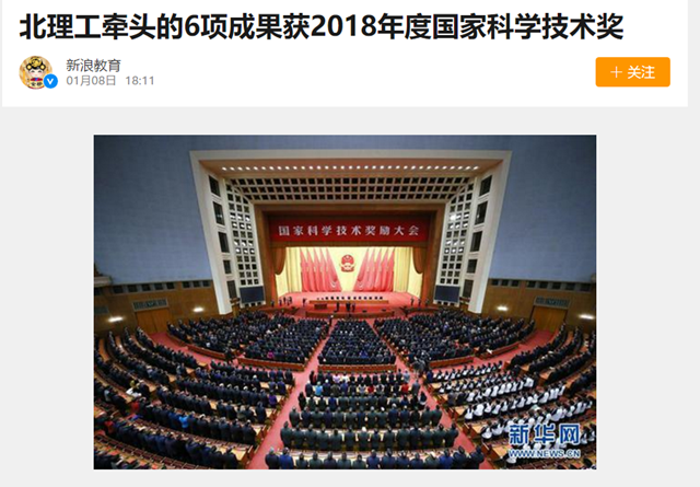 【新浪网】北理工牵头的6项成果获2018年度国家科学技术奖