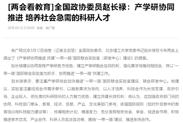 【两会▪央广网】赵长禄委员:产学研协同推进 培养社会急需的科研人才