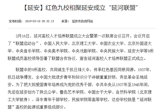 【延安市政府网】红色九校相聚延安成立“延河联盟
