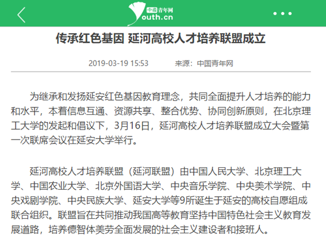 【中国青年网】传承红色基因 延河高校人才培养联盟成立