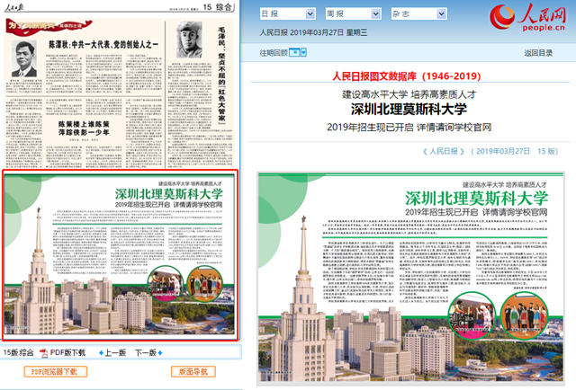 【人民日报】深圳北理莫斯科大学2019年招生现已开启