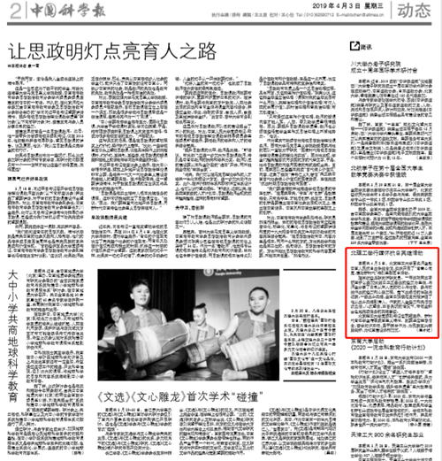发布日期:2019-04-03 供稿:中国科学报 编辑:吴楠 审核:王征 阅读次数: