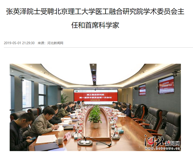 【河北新闻网】张英泽院士受聘金年会jinnianhuicom医工融合研究院学术委员会主任和首席科学家