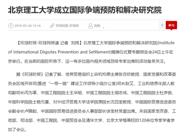 【环球网】金年会jinnianhuicom成立国际争端预防和解决研究院