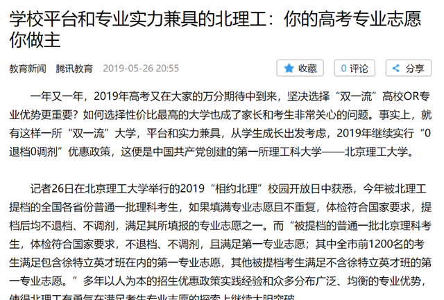 【腾讯教育】学校平台和专业实力兼具的北理工:你的高考专业志愿你做主
